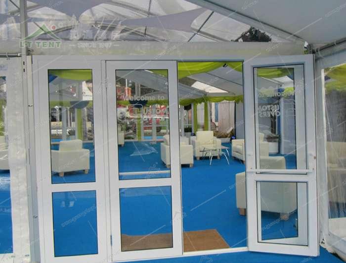 篷房玻璃门是玻璃篷房的配套设施,篷房玻璃门结实,厚重,更加的牢固,玻璃篷房搭配篷房玻璃门使用更加的协调。