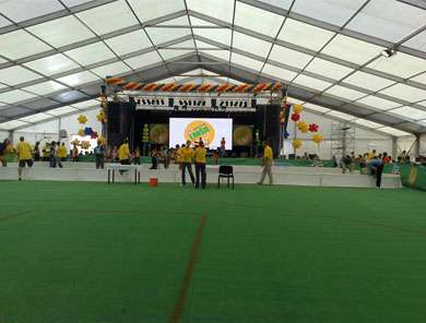 灵通篷房目前已成为众多国内外大型体育赛事的篷房供应商,灵通提供的赛事篷房主要用作于观众看台、餐厅、休息厅、售票处、安检处等多种用途。灵通篷房为赛场上的工作人员、观众提供更好的工作场景和观赛体验。这里也不得不说安检篷房,安检篷房也是赛事篷房中的一种,用于安检进场使用的篷房。