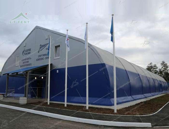 3.桃形篷房可选配套完善,可加配照明、排水、防雷、防撞、地台、空调、发光灯箱、墙体、门等系统